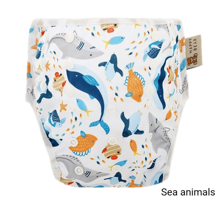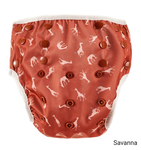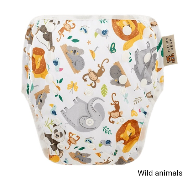 Zorg dat de zwemluier goed aansluit om de beentjes en de romp van je baby, zodat eventuele ontlasting er niet uit kan lopen. Er hoeft geen wegwerpzwemluier onder deze zwemluier